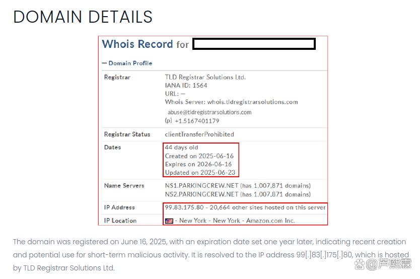主攻击页面域名注册于2025年6月16日,有效期一年;