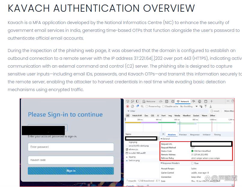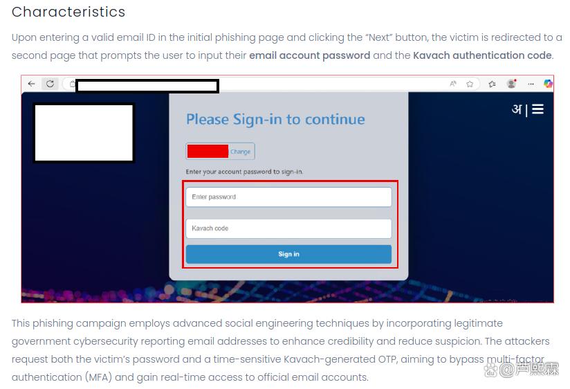 2025年中期,CYFIRMA披露了一起由APT36主导的新型钓鱼攻击活动,其核心突破点在于成功绕过印度国家信息中心(NIC)开发的Kavach多因素认证系统。Kavach作为印度政府电子邮件服务的强制性MFA机制,采用基于时间的一次性密码(TOTP)技术,理论上可有效抵御凭证窃取。然而,本次攻击通过“实时中继”方式,在受害者输入OTP的瞬间将其转发至攻击者控制的服务器,从而实现会话劫持。这一技术路径表明,传统MFA机制在面对具备实时交互能力的钓鱼平台时存在结构性脆弱。