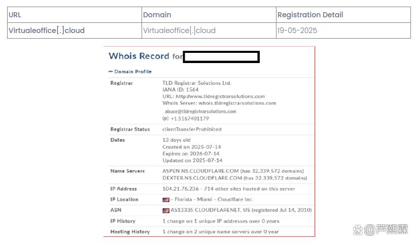 virtualeoffice.cloud 注册于2025年5月19日;