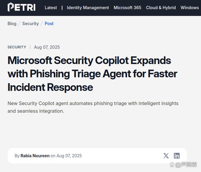 关键词:Security Copilot;钓鱼邮件分拣;AI安全代理;自动化调查;Microsoft Defender;增强智能