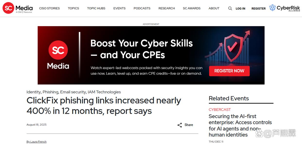 关键词:ClickFix;网络钓鱼;社会工程;无密码认证;邮件安全;用户行为分析