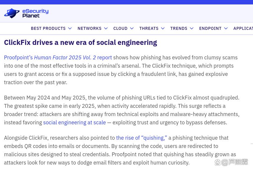 多因素认证(MFA)的普及显著提升了账户安全基线,迫使攻击者从单纯窃取静态凭据转向更复杂的交互式攻击模式。近年来,Adversary-in-the-Middle(AitM)架构成为绕过MFA的主流技术路径,其核心在于实时代理用户与合法服务之间的全部通信,从而截获有效的会话令牌。然而,技术手段的成功往往依赖于高效的社会工程策略。2025年上半年,安全社区观察到一类新型钓鱼活动——“ClickFix”——其独特之处不在于底层技术的革新,而在于对用户心理预期的精准操控。