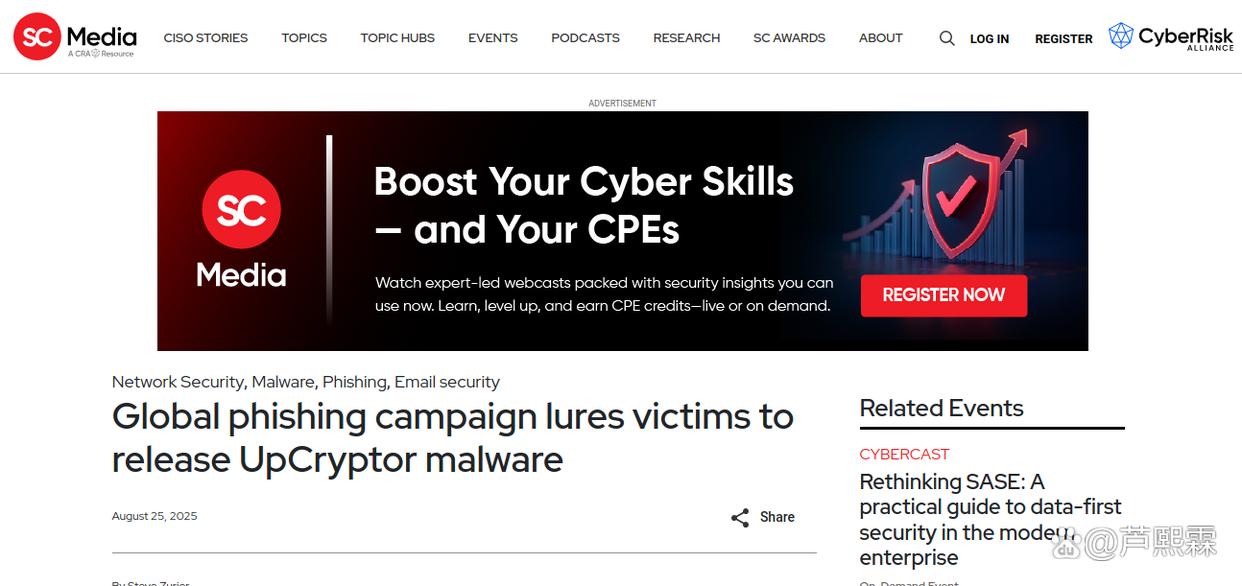 近年来,针对企业组织的定向钓鱼攻击呈现出高度工程化、模块化与规避检测能力增强的趋势。2025年披露的一起全球性钓鱼行动——以“释放UpCryptor”为诱饵——展示了攻击者在投递机制、载荷构造与后期行为切换方面的显著演进。该活动通过伪装成财务结算通知、法律传票或物流放行文件等高可信度社会工程内容,诱导收件人打开看似无害的PDF或ZIP附件,进而触发多阶段下载器链,最终部署名为UpCryptor(亦称Upcrypter)的加密封装恶意程序。