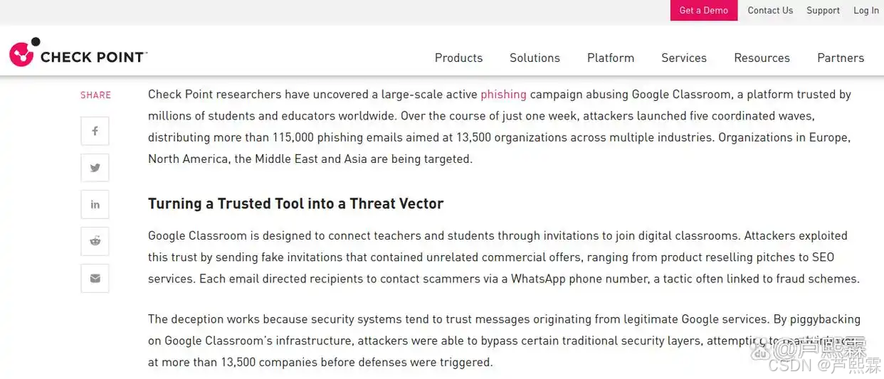 关键词:Google Classroom;钓鱼攻击;SaaS滥用;邮件安全;CASB;零信任;FIDO2