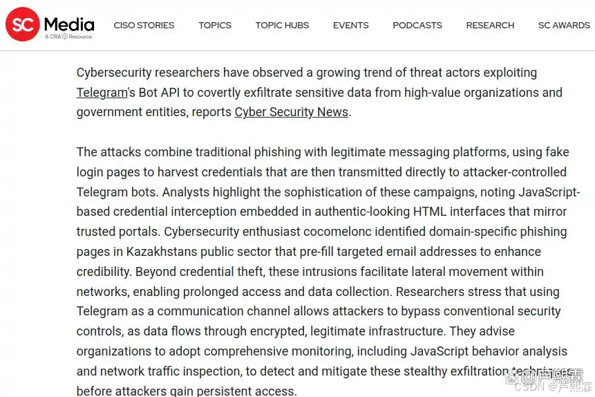 关键词:Telegram;钓鱼攻击;Bot API;AiTM;数据外泄;WebView劫持;零信任