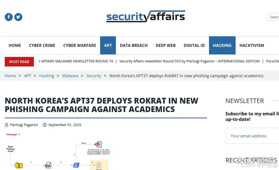 国家行为体主导的网络间谍活动长期聚焦于国防、外交与关键基础设施领域,但近年来其目标范围显著扩展至学术界、智库及非政府政策研究组织。此类“软目标”虽缺乏高强度网络安全防护,却往往掌握未公开的政策分析、专家联络网络及地缘战略研判成果,成为国家级APT组织极具吸引力的情报来源。2025年9月,Seqrite Labs披露朝鲜APT37组织针对韩国学术圈发起的新一轮攻击行动——“Operation HanKook Phantom”,标志着此类定向情报采集已进入高度专业化与自动化阶段。