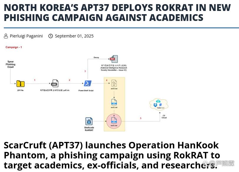 关键词:APT37;RokRAT;鱼叉式钓鱼;学术界安全;云隐蔽通信;脚本宿主滥用;威胁情报共享