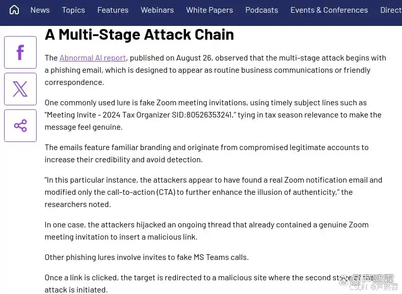 当前研究多集中于RMM工具漏洞利用(如CVE-2024-1234),而对其作为社会工程载体的滥用关注不足。本文填补这一空白,深入分析攻击者如何通过品牌仿冒、上下文欺骗与用户心理操控,完成从初始接触至系统接管的全过程。全文结构如下:第二部分详述攻击链各阶段;第三部分解析技术实现与规避机制;第四部分评估对现有防御体系的影响;第五部分提出多层次缓解策略;第六部分提供技术示例;第七部分总结。