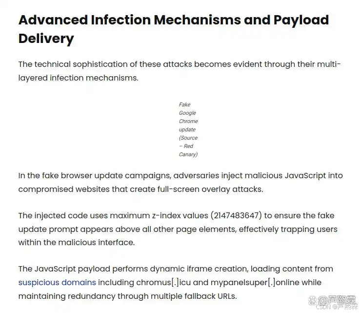 伪造浏览器更新:在被攻陷网站注入全屏JavaScript覆盖层,提示“Chrome需立即更新”,按钮链接指向RMM安装包;
