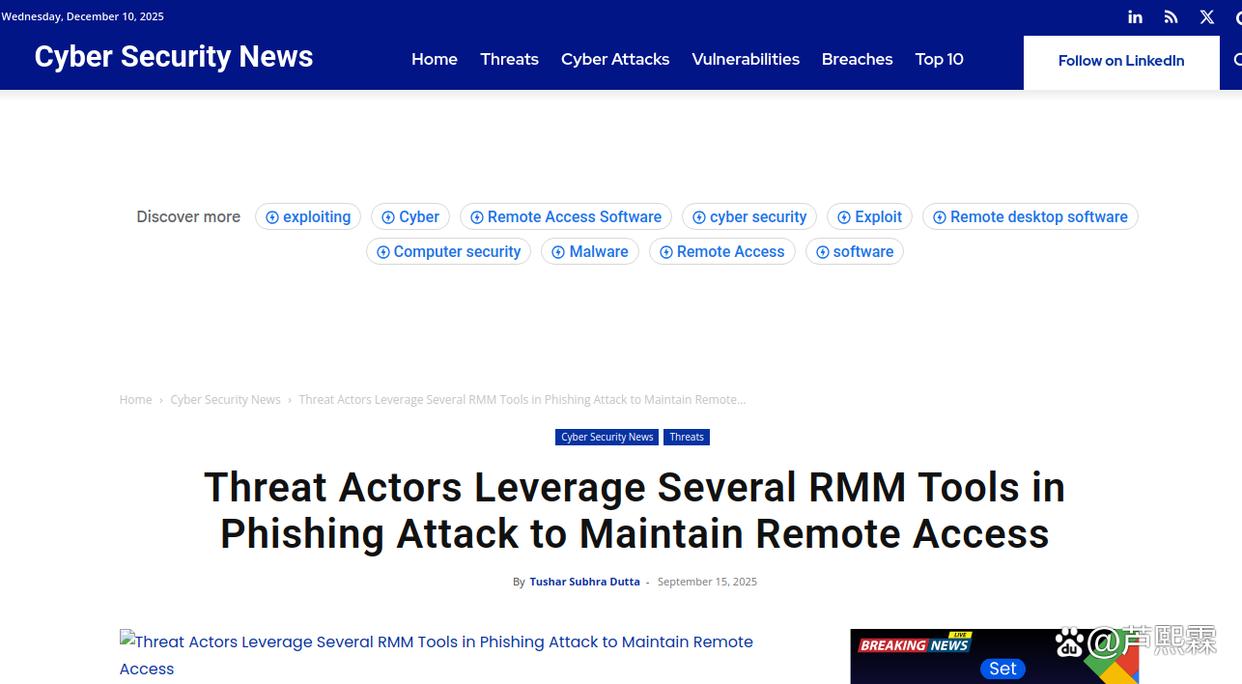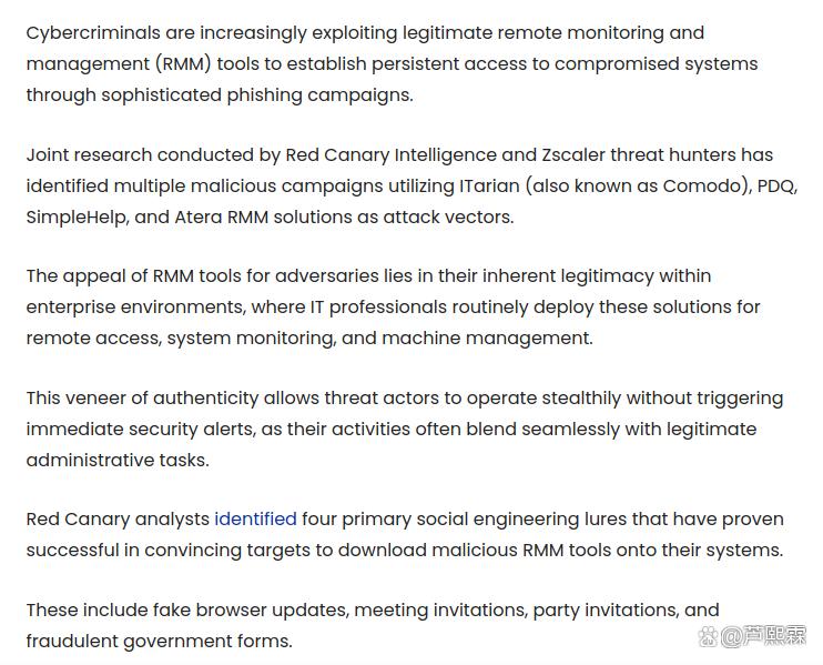 关键词:RMM工具;持久化访问;合法软件滥用;行为检测;应用控制;零信任;供应链安全
