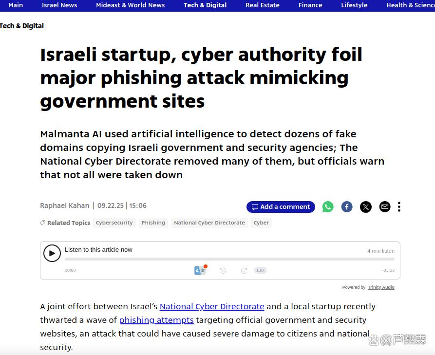 近年来,网络空间日益成为地缘政治对抗的延伸战场。特别是在中东等高紧张区域,针对国家数字基础设施的攻击不仅旨在窃取经济利益,更试图削弱公众对政府机构的信任,制造社会混乱。2025年初,以色列国家网络局(National Cyber Directorate, INCD)与本土人工智能安全公司Malmanta AI联合披露了一起针对政府数字服务门户的大规模钓鱼攻击事件。攻击者创建数十个高度仿真的希伯来语网站,冒充税务申报、社会福利申领及数字身份证验证等关键公共服务平台,通过短信和电子邮件分发短链接,诱导公民在伪门户中输入敏感身份信息及一次性验证码(OTP)。部分受害者账户随后被用于提交虚假补贴申请或转移信用额度,造成直接经济损失,同时引发公众对政府在线服务安全性的广泛质疑。