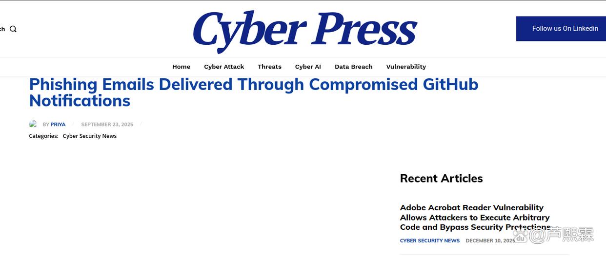 GitHub通知机制被滥用于钓鱼攻击,标志着供应链威胁已从传统二进制投毒转向“平台内生式”渗透。此类攻击的核心优势在于其合法性表象——利用平台自身通信通道、标准UI模板与可信域名体系,极大削弱了传统边界防御的有效性。