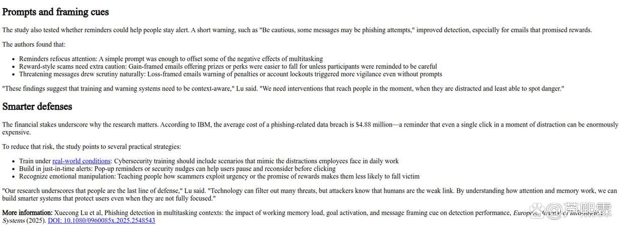 关键词:多任务处理;钓鱼攻击;认知负荷;注意力碎片化;情境感知安全;邮件安全