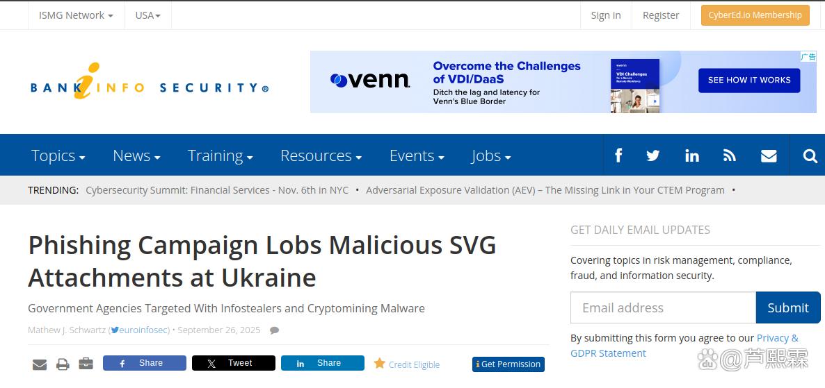 近年来,攻击者持续利用文件格式特性规避传统安全检测机制。2025年9月,Fortinet与BankInfoSecurity披露了一起针对乌克兰政府机构的定向钓鱼活动,其核心特征在于使用可缩放矢量图形(Scalable Vector Graphics, SVG)作为初始载体,通过诱导用户打开伪装成“电子请求”的elektronni_zapit_NPU.svg文件,触发多阶段恶意载荷投递链。该链条依次涉及浏览器重定向、密码保护ZIP压缩包下载、Compiled HTML Help(CHM)文件执行,并最终部署Amatera信息窃取器与PureMiner加密货币挖矿程序。本文系统剖析此攻击链的技术实现细节,重点揭示SVG在现代邮件安全体系中的检测盲区、CHM文件的代码执行能力及其与HTML Application(HTA)脚本宿主的协同滥用机制。在此基础上,提出分层防御框架,涵盖邮件网关策略强化、端点执行环境限制、沙箱行为增强及威胁狩猎指标构建。通过提供SVG内容解析、CHM行为模拟与自动化提取的代码示例,本文为安全运维人员提供可操作的技术工具,旨在提升对灰区文件格式攻击的识别与阻断能力。