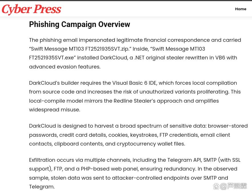 本文聚焦此次攻击事件,旨在回答三个核心问题:(1)DarkCloud v3.2如何实现高效的信息窃取与隐蔽外传?(2)其规避机制如何干扰传统安全产品的检测逻辑?(3)针对以客服工单系统为入口的定向攻击,应构建怎样的技术与管理协同防御体系?通过逆向工程、行为模拟与防御策略推演,本文力图提供兼具技术深度与实践价值的分析框架。