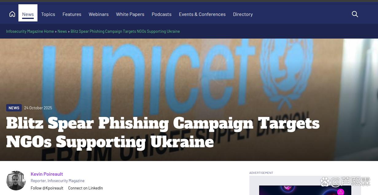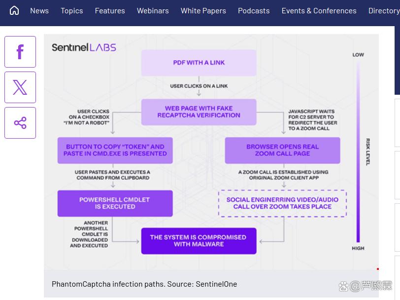 2025年10月8日,网络安全公司SentinelOne披露了一起针对乌克兰人道主义援助组织及地方政府机构的高精度鱼叉式网络钓鱼行动,代号“PhantomCaptcha”。该行动在单日内完成部署、投递与初步感染,目标涵盖国际红十字会、挪威难民理事会、联合国儿童基金会(UNICEF)以及乌克兰顿涅茨克、第聂伯罗彼得罗夫斯克、波尔塔瓦和尼古拉耶夫等州级行政单位。攻击者通过伪造乌克兰总统办公室邮件,嵌入恶意PDF文档,诱导用户点击其中链接,进而跳转至伪装成Zoom会议平台的恶意域名,并利用仿冒Cloudflare CAPTCHA页面实施社会工程,最终部署基于WebSocket协议的远程访问木马(RAT)。此次攻击不仅体现出高度的操作隐蔽性与技术复杂性,还首次展现出攻击者通过客户端标识(client ID)实现对受害者行为的实时追踪与动态引导能力,构成典型的“多通道联动”式精准打击。