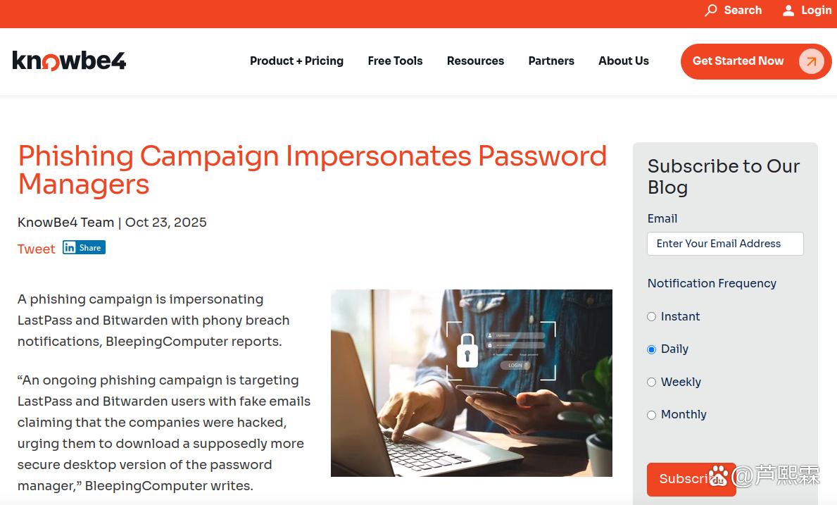 由于服务端无明文凭据,传统数据泄露攻击失效。攻击者转而聚焦用户侧,通过钓鱼、恶意软件或社会工程获取主密码。其中,钓鱼因其低成本、高回报成为首选。尤其当攻击者能精准模仿品牌通知时,成功率显著提升。