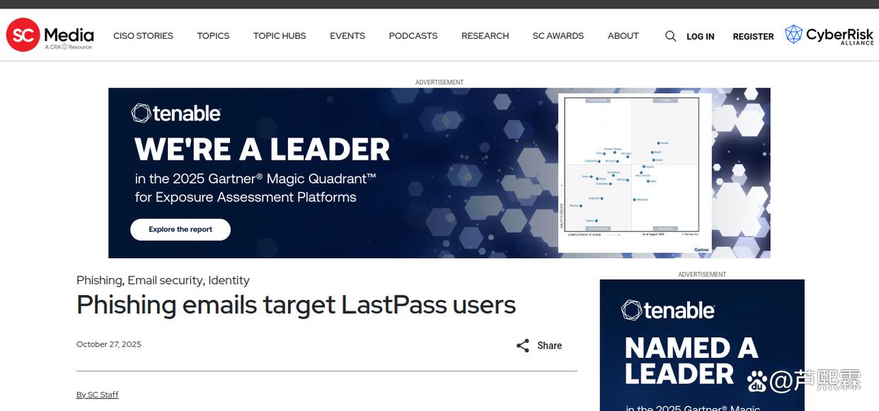 密码管理器作为现代数字身份的核心载体,其安全性直接关联用户在金融、通信、企业应用等关键领域的资产防护能力。LastPass作为全球主流商业密码管理服务之一,长期处于高级威胁行为体的瞄准镜中。继2023年大规模数据泄露事件后,2025年末新一轮钓鱼攻击浪潮再次聚焦该平台,展现出更强的工程化与社会工程融合能力。