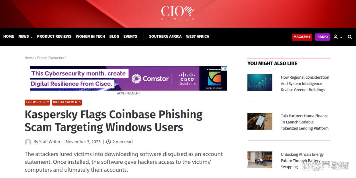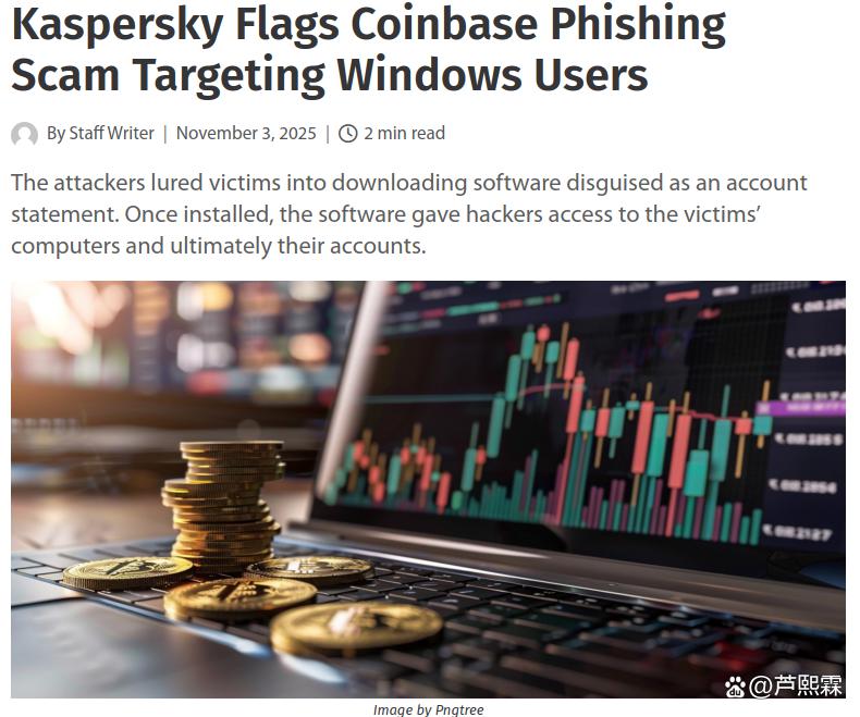 随着加密货币交易规模持续扩大,其用户群体已成为网络犯罪组织的重点目标。相较于传统银行账户,加密货币钱包一旦失窃,资金几乎无法追回,这使得攻击者倾向于采用高成功率、低可逆性的攻击手段。2025年11月,Kaspersky披露的一起针对Coinbase用户的钓鱼活动,标志着攻击模式从早期的“仿冒登录页窃取主密码”向“诱导执行远控程序实现端点完全接管”的演进。