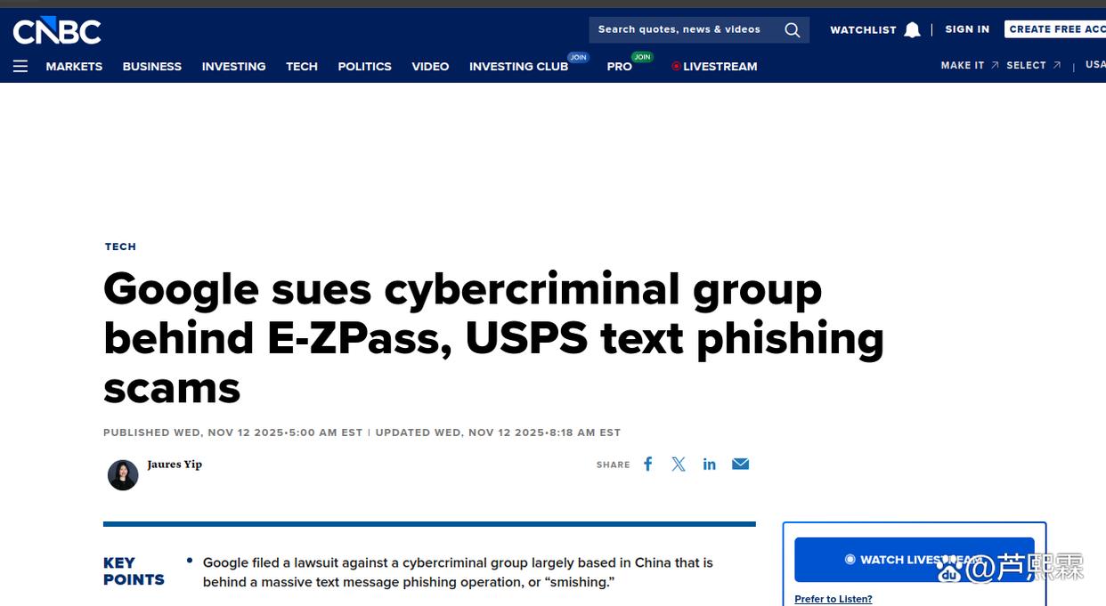 2025年11月12日,Google在加利福尼亚北区联邦法院对一个被其称为“Smishing Triad”的犯罪组织提起民事诉讼,标志着科技企业首次以系统性法律手段对抗大规模smishing基础设施。该组织依托名为“Lighthouse”的钓鱼即服务平台,提供模板化钓鱼页面生成、受害者数据库管理、短信分发调度等功能,已在全球120余国造成超百万受害者,仅在美国就涉嫌窃取1270万至1.15亿张信用卡信息。Google指控其构成商标侵权、不正当竞争及计算机系统非法入侵,并请求法院签发永久禁令、冻结涉案资产,并强制关停相关域名与服务器。