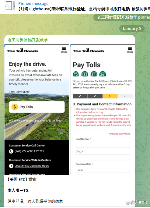 随着移动支付在全球范围内的普及,攻击者正将焦点从传统网络钓鱼(Phishing)转向更具时效性与高转化率的短信钓鱼(Smishing)。2025年11月,Google针对一个被安全社区称为“Smishing Triad”的中国背景犯罪团伙发起法律行动,揭露其通过名为Lighthouse的PhaaS平台,在全球120余国实施大规模短信钓鱼攻击,受害者超百万人。该团伙不仅仿冒USPS、E‑ZPass等公共服务机构,还近期扩展至电商平台、金融机构及券商,利用用户对账单逾期、包裹滞留或账户异常的焦虑心理,诱导其点击短信中的链接并提交支付卡信息及一次性验证码(OTP)。