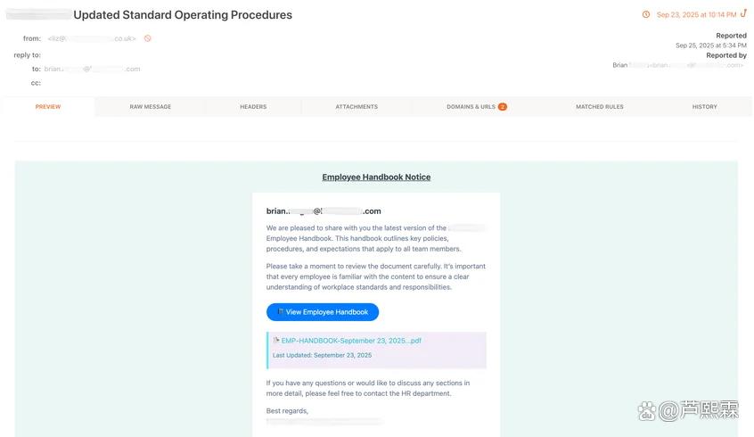 组织应建立“钓鱼话术知识库”,将真实QRR邮件脱敏后用于模拟演练。例如: