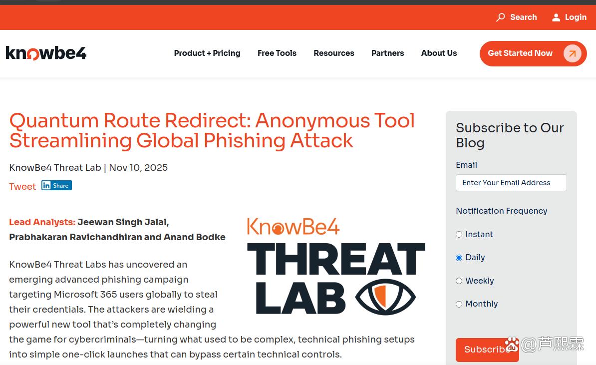 关键词:Quantum Route Redirect;钓鱼即服务;Microsoft 365;智能重定向;浏览器指纹;零信任安全