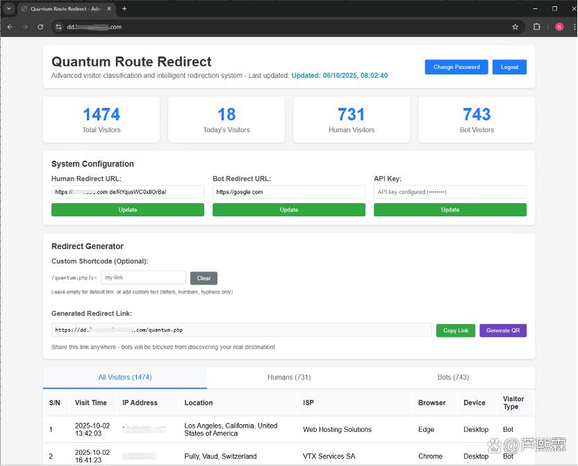 QRR的核心是一个基于PHP构建的中央路由引擎,部署于被入侵或低价注册的合法域名上。其工作流程分为三阶段:初始链接激活、访客类型判定、差异化重定向。