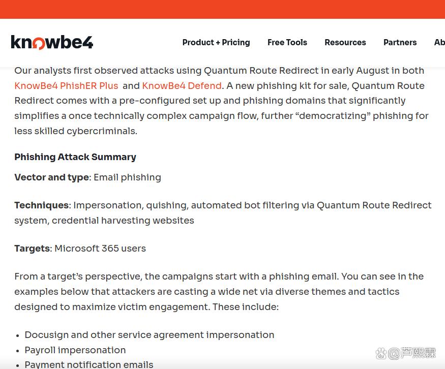 随着云办公生态的普及,Microsoft 365已成为全球企业核心生产力平台,亦成为网络犯罪分子的重点目标。据微软2025年安全报告显示,超过74%的企业账户泄露事件源于钓鱼攻击。传统钓鱼依赖手工构建虚假登录页,而当前攻击已演进为高度自动化的PhaaS模式。2025年8月,KnowBe4在其PhishER Plus与Defend平台上首次观测到名为“Quantum Route Redirect”(以下简称QRR)的钓鱼基础设施,其通过动态路由、匿名托管与智能访客识别,实现“对人投毒、对机示好”的双重行为,显著提升投递成功率。