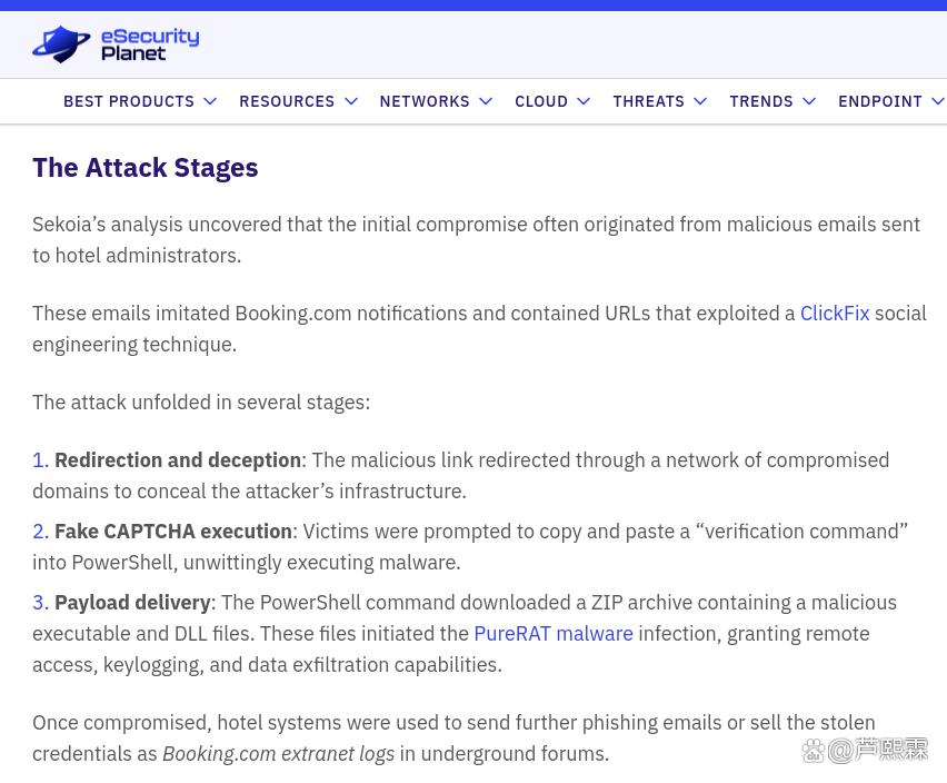 此类攻击的成功依赖于三个现实条件:一是旅游旺季订单激增,酒店客服人力紧张,难以逐条核实消息真实性;二是跨国预订普遍存在语言障碍,沟通依赖模板化文本,降低异常识别能力;三是Booking.com等平台允许通过站内信发送链接,且未对敏感操作实施强二次验证。更严重的是,部分攻击始于真实酒店账户被接管,使得钓鱼消息具备完整上下文与历史记录,进一步提升可信度。
