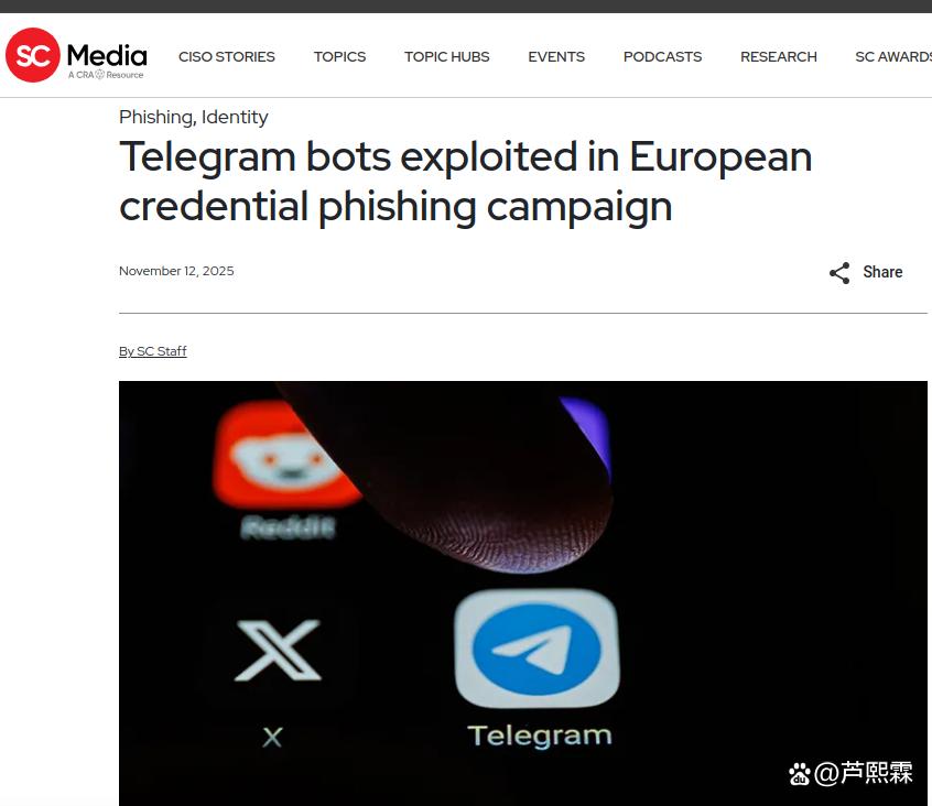 随着云服务与数字身份的深度融合,凭证窃取已成为网络攻击的核心目标。传统钓鱼依赖静态表单提交与邮件回传,响应延迟高、操作闭环弱。然而,自2024年起,欧洲地区出现一种以Telegram机器人为交互枢纽的新型钓鱼模式,显著提升了攻击效率与隐蔽性。据SC World简报披露,此类活动主要针对企业邮箱(如Microsoft 365)、在线银行及社交媒体账户,通过短信或邮件引流至伪造登录页,用户输入凭证后,数据经API实时推送至攻击者控制的Telegram频道,操作员可立即介入,执行验证码绕过、二次验证触发或会话劫持等后续动作。