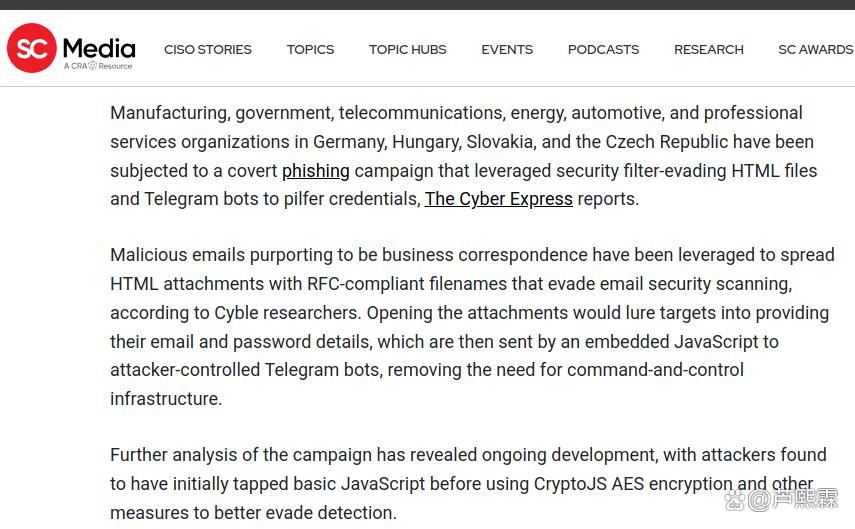 近年来,即时通讯平台因其开放的Bot API和高用户渗透率,逐渐被网络犯罪组织武器化。2025年下半年,欧洲多国安全机构联合披露一类新型凭证钓鱼活动,其核心特征是以Telegram机器人作为攻击控制中枢,实现钓鱼模板分发、受害者数据实时回传与会话接管指令下发。本文基于对实际样本的逆向分析及流量日志重建,系统阐述该攻击模式的技术架构、交互流程与横向扩展能力。研究发现,攻击者通过将前端钓鱼页面与后端Telegram Bot解耦,显著提升了运营弹性与响应速度;同时利用Telegram频道的广播特性,实现“一对多”指令同步。针对此类威胁,本文提出三层防御体系:在基础设施层封禁高风险Bot关联通道,在终端层强化多因素认证与跨平台跳转管控,在安全运营中心(SOC)部署基于行为时序的异常检测规则,并附可落地的代码示例。研究表明,仅依赖传统邮件过滤或URL黑名单已无法应对高度动态、人机协同的钓鱼生态,需构建融合通信平台监控与身份上下文感知的纵深防御机制。
