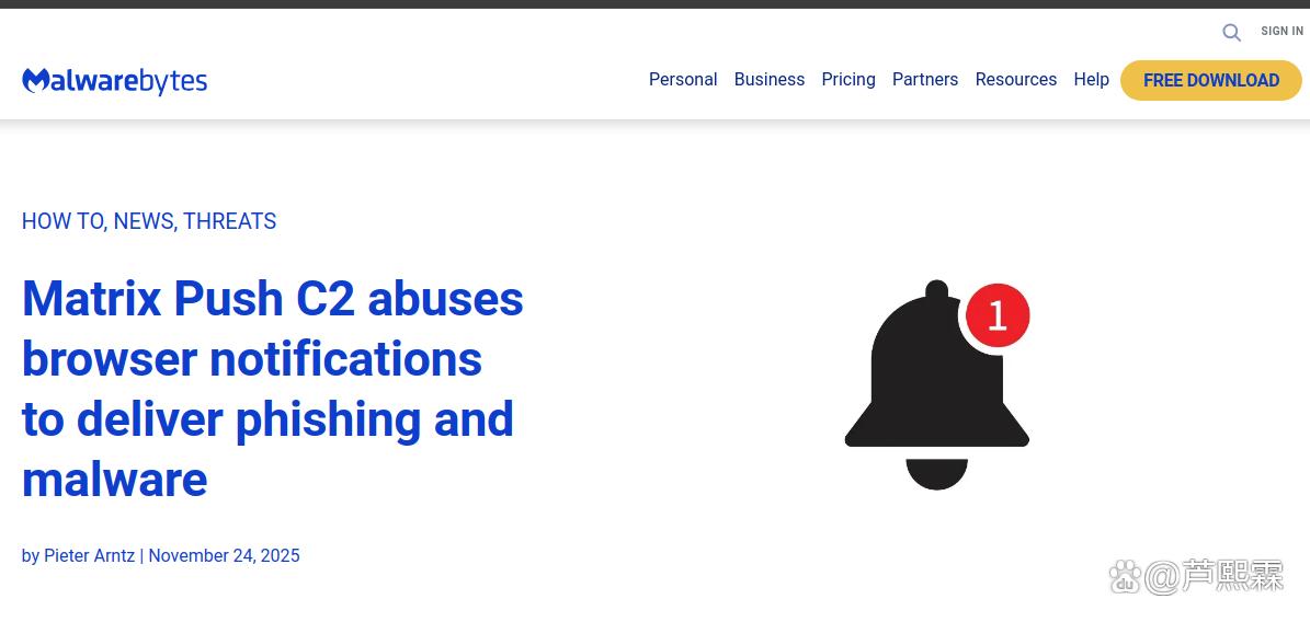 2025年11月,Malwarebytes发布报告指出,一种名为“Matrix Push C2”的新型C2框架正在全球范围内活跃。该框架的核心创新在于:完全依托浏览器的Web Push Notifications功能构建C2通道。用户一旦在诱导页面点击“允许”通知权限,攻击者即可绕过常规网络过滤,在任意时间向受害者设备推送伪装成系统或知名应用(如PayPal、MetaMask、Netflix)的通知。这些通知包含短链接,引导用户访问钓鱼页面或下载恶意软件。由于整个过程未在本地磁盘写入任何二进制文件,且通信流量经由标准HTTPS加密通道传输,传统防病毒软件与网络入侵检测系统(NIDS)难以有效识别。
