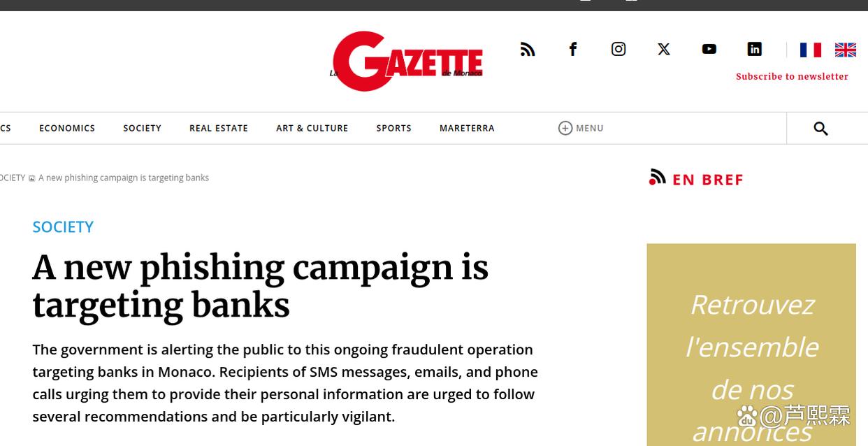 摩纳哥作为欧洲重要的离岸金融中心,其银行业以高净值客户服务和严格隐私保护著称。然而,这一特性也使其成为网络犯罪分子的重点目标。2025年初,摩纳哥金融监管机构(Commission de Contrôle des Activités Financières, CCAF)发布紧急通告,指出当地多家银行客户正遭受一轮新型钓鱼攻击。与传统广撒网式钓鱼不同,此次攻击展现出高度专业化、本地化与上下文感知能力:攻击者不仅精准模仿摩纳哥主流银行(如Banque Privée Edmond de Rothschild、Monaco Banque)的邮件模板与法语措辞,还针对用户近期交易行为定制诱饵内容。