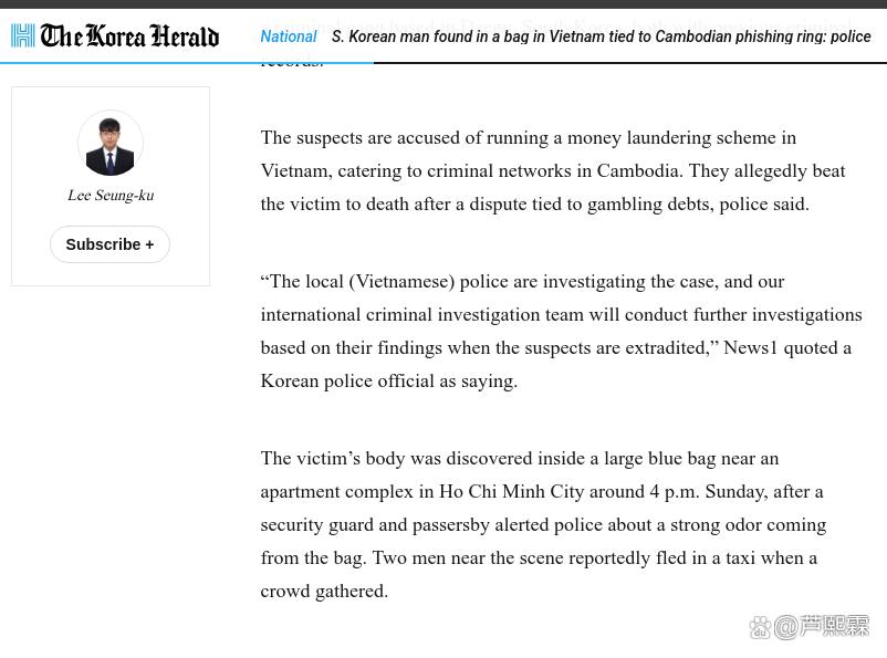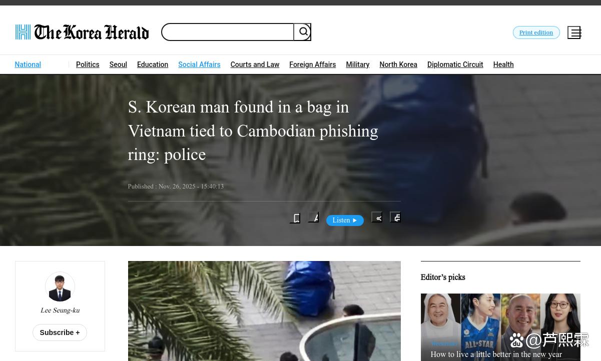 2025年11月26日,越南胡志明市警方在Nguyen Huu Canh街一处公寓楼附近发现一个散发异味的蓝色大袋,内藏一名重伤但尚有生命体征的韩国男子。经身份核实,该男子为31岁的Lee Seung-ku,此前被韩国警方列为在逃人员,涉嫌参与位于柬埔寨的大型网络钓鱼与电信诈骗组织。据韩越联合调查初步披露,Lee在团伙中负责钓鱼网站的技术维护,可能因内部利益冲突或试图携款潜逃而遭同伙报复,被暴力拘禁后转运至越南弃置。