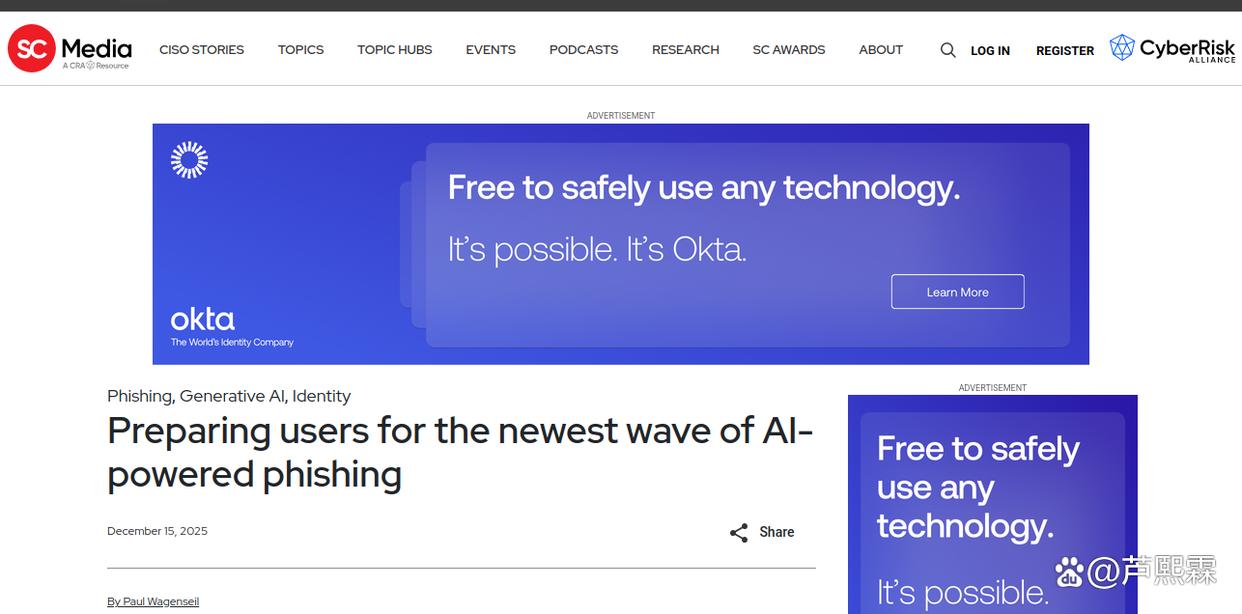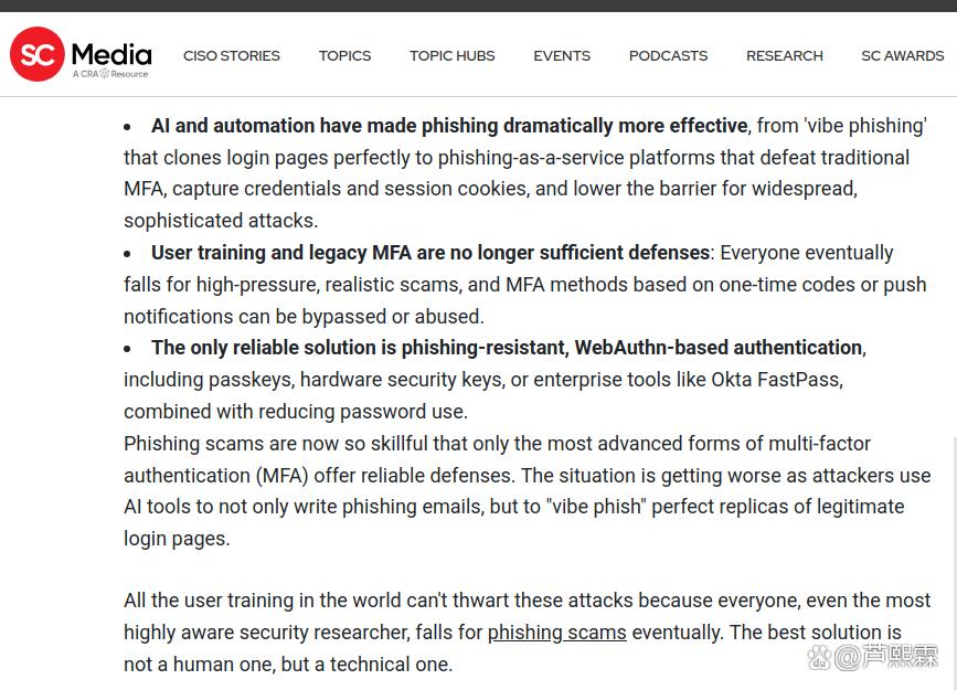 网络钓鱼长期被视为社会工程攻击的主要载体。过去二十年中,防御策略主要围绕两个维度展开:一是技术层面的邮件过滤、URL信誉与页面仿冒检测;二是人员层面的安全意识培训,强调识别拼写错误、可疑发件人地址或非官方链接等显性特征。然而,随着生成式人工智能(Generative AI)技术的成熟,攻击者已能自动化生成高度逼真的钓鱼内容,不仅在视觉上复刻目标品牌的UI/UX,在语言风格上亦可精准模仿特定组织内部的沟通语境,形成所谓“氛围钓鱼”(vibe phishing)。