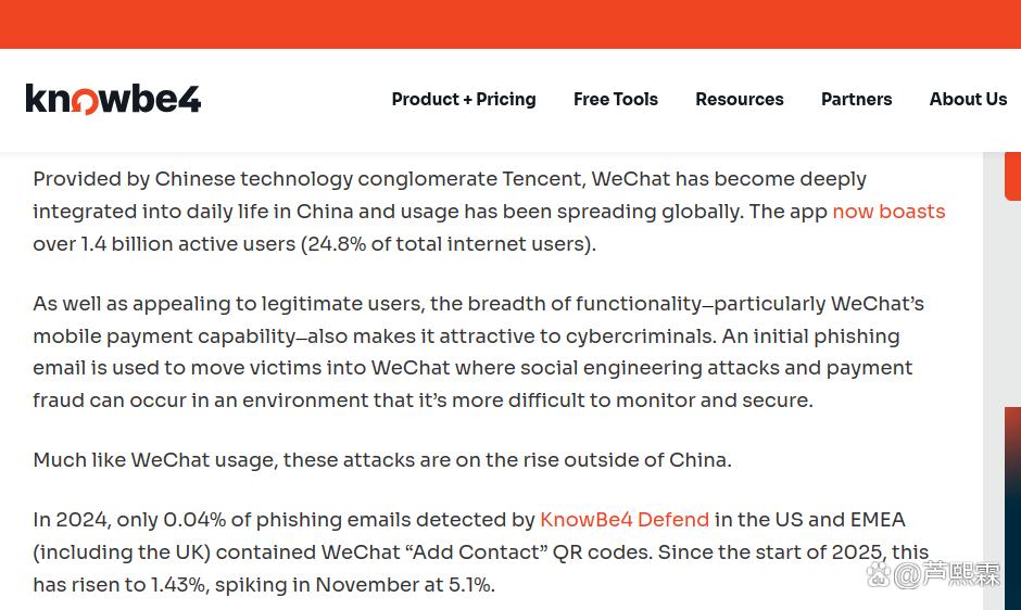微信(WeChat)由腾讯公司开发,最初定位为中国市场的超级应用(Super-app),集即时通讯、社交、支付、政务服务与商业功能于一体。截至2025年,其全球月活跃用户已超过14亿,其中海外用户占比持续上升,尤其在东南亚、北美及欧洲的华人社区和跨境贸易从业者中广泛使用。然而,这种深度集成也使其成为高价值攻击面。近年来,针对微信的网络钓鱼活动呈现显著的国际化趋势——攻击者不再局限于中文语境下的本地诈骗,而是主动适配英语及其他语言,瞄准在华经营或与中国有业务往来的跨国企业员工。
