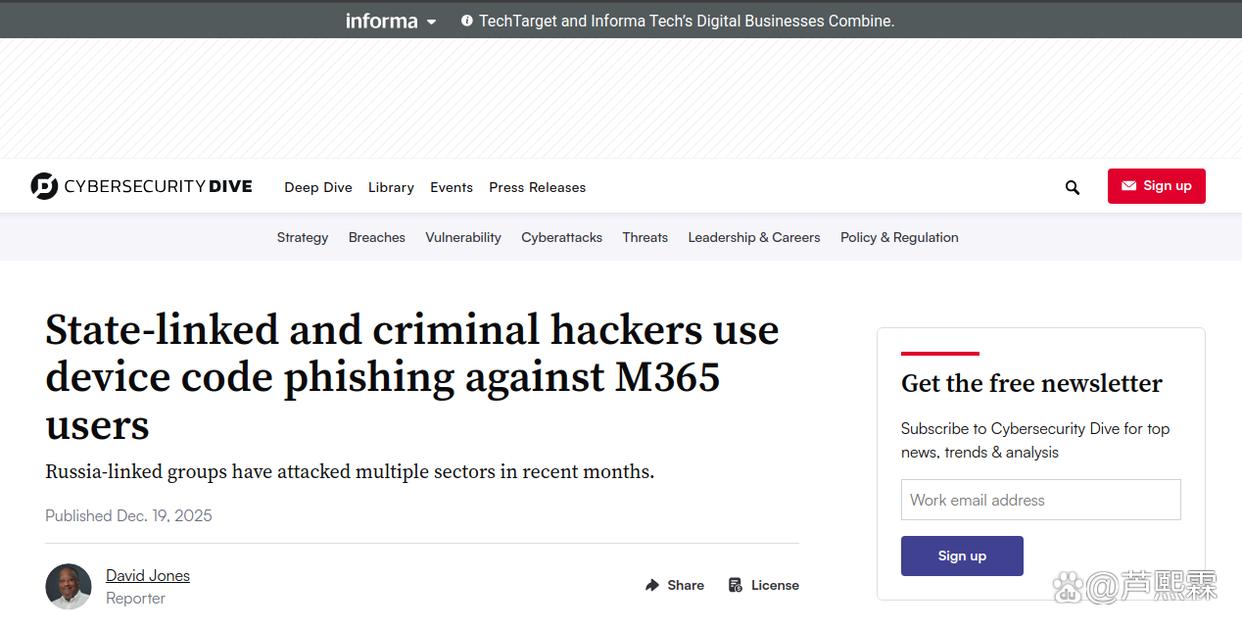 关键词:设备代码钓鱼;OAuth 2.0;Microsoft 365;APT;网络犯罪;MFA绕过;身份安全