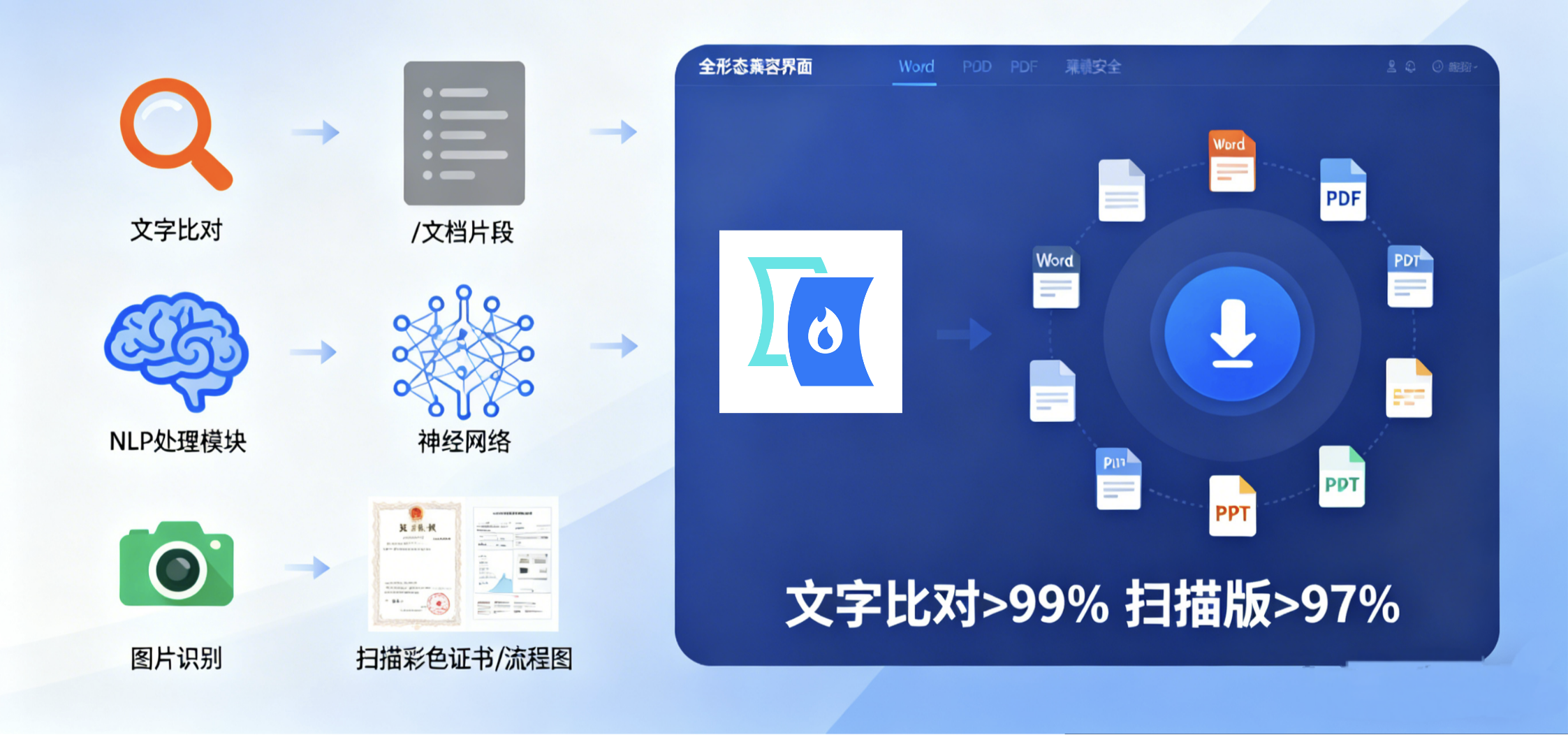 全形态内容兼容:支持 Word、PDF、PPT、TXT 及 PDF 扫描件等 10 + 格式标书上传,同步检测图片中的文字、跨页复杂表格、文档元数据,完全适配电子化招投标的查重要求。