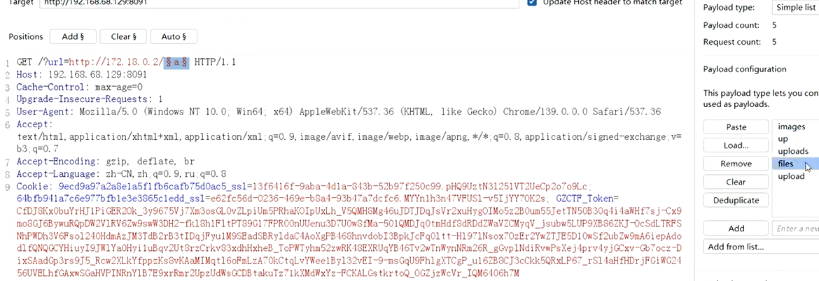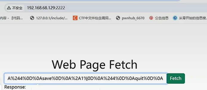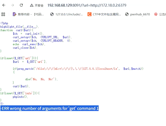 POST与GET传参的区别:它有4个参数为必要参数 POST /post.php HTTP/1.1host:192.168.194.1Content-Type:application/x-www-form-urlencodedContent-Length:12name=purplet 如下构造: curl gopher://192.168.194.1:80/_POST%20/post.php%20HTTP/1.1%0d%0AHost:192.168.194.1%0d%0AContent-Type:application/x-www-form-urlencoded%0d%0AContent-Length:12%0d%0A%0d%0Aname=purplet%0d%0A