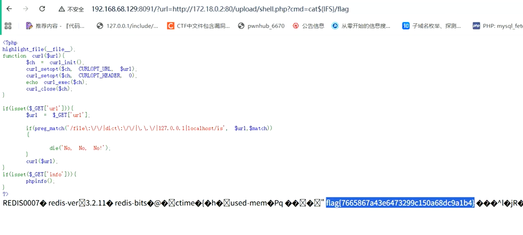 <?php // 文件名: main.php $url = "dict://localhost:3306"; // localhost:3306 上架设了我的 mysql 服务 $ch = curl_init($url); curl_exec($ch); curl_close($ch);