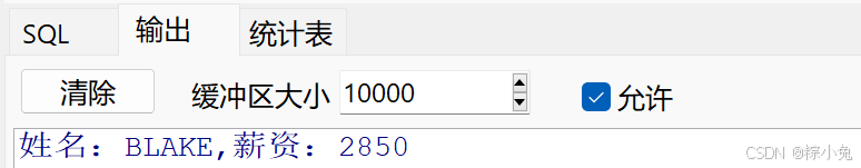 dbms_output.put_line('姓名:'||v_name||',薪资:'||v_sal);