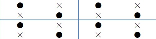 (2)遍历大迷宫中的每个点(●和×),判断其周围是否有通路(此处要特别注意大迷宫4个角以及外围4个边行上的点的判断)。因此,还需要构造与大迷宫尺寸相等的数组,用来记录每个点的通路情况。