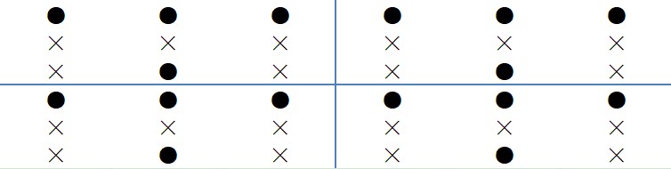 如图,是4个3*3的迷宫单元组成的大迷宫,包含了所有的组合方式。