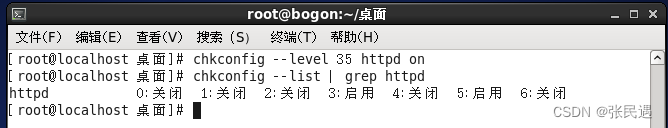 该案例中设置 apache 在运行模式 3 和运行模式 5 下开机自启动,3 和 5 之间不要有空格。