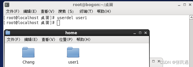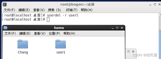 该命令中选项 -r 表示删除用户时,连带其家目录一起删除。