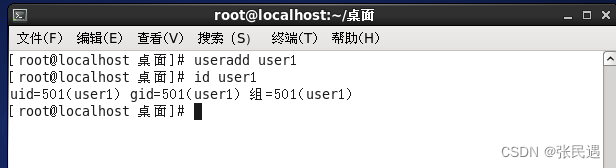 该案例不加选项,用户id、用户组id 默认从 500 以后分配。此时终端显示的 组=501(user1) 只表示创建了一个 id 为501 的组,它既可以做主组,也可以做附加组。本案例中 501 做主组的时候,是该用户的主组,做附加组的时候组内没有成员。如果 组=501(user1) 后面跟着别的组,则 = 后面第一个代表该用户的主组,跟在后面的代表这个用户的附加组。查看附加组还可以通过文件 /etc/group 实现,最后一个 :后面有用户就表示它是哪个用户的附加组,最后一个 :后面没有用户就表示它作为附加组,组内没有成员。