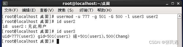方法:#usermod -u 新用户id -g 新主组id/新主组名 -G 新附加组id/新附加组名 -c 新注释 -l 新用户名 老用户名
