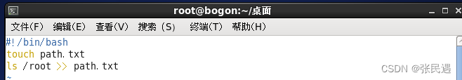 案例:创建一个名为 test1 的 shell 文件,要求能够自动创建一个名为 path.txt 的文件,并将 /root 的目录编入其中。